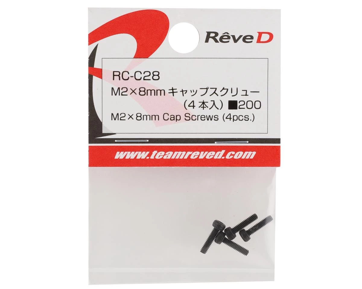 This is a package of four Reve D 2x8mm Socket Head Cap Screws.