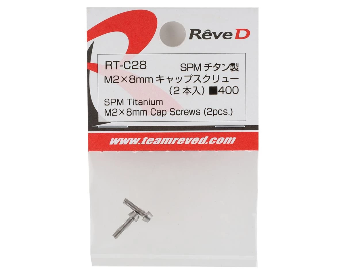 A replacement package of two Reve D 2x8mm SPM Titanium Socket Head Cap Screws.