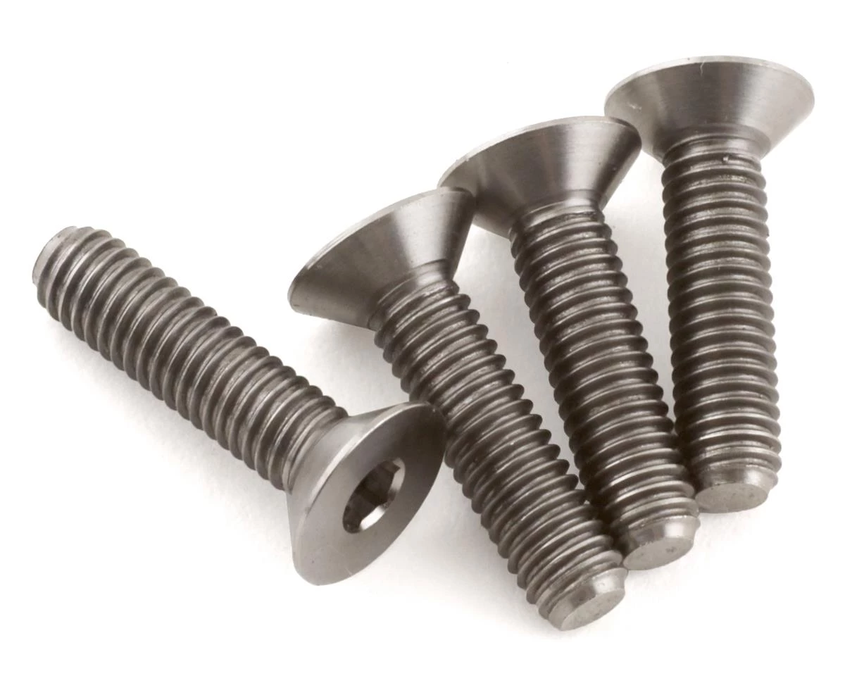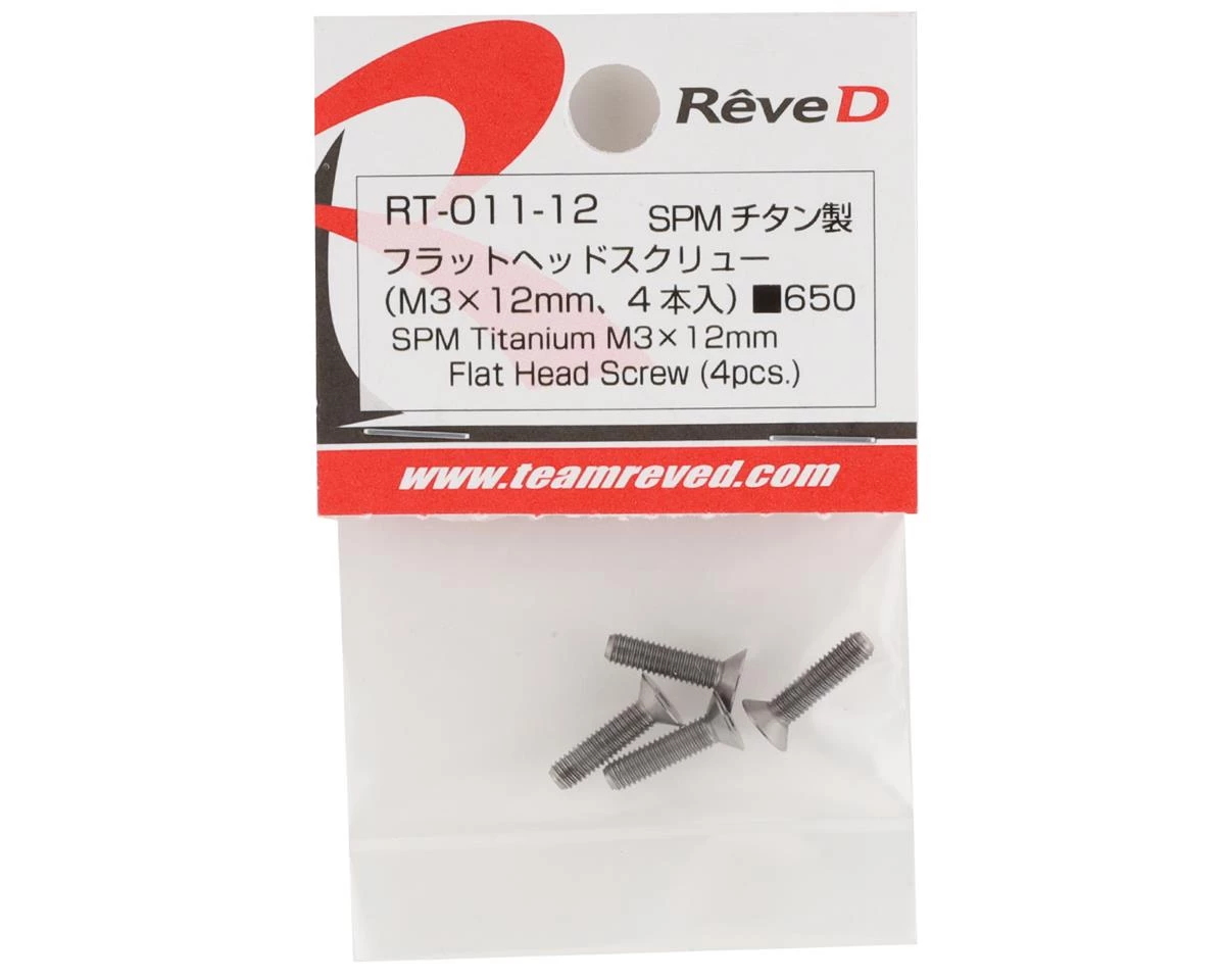 A package of four Reve D 3x12mm SPM Titanium Flat Head Screws.