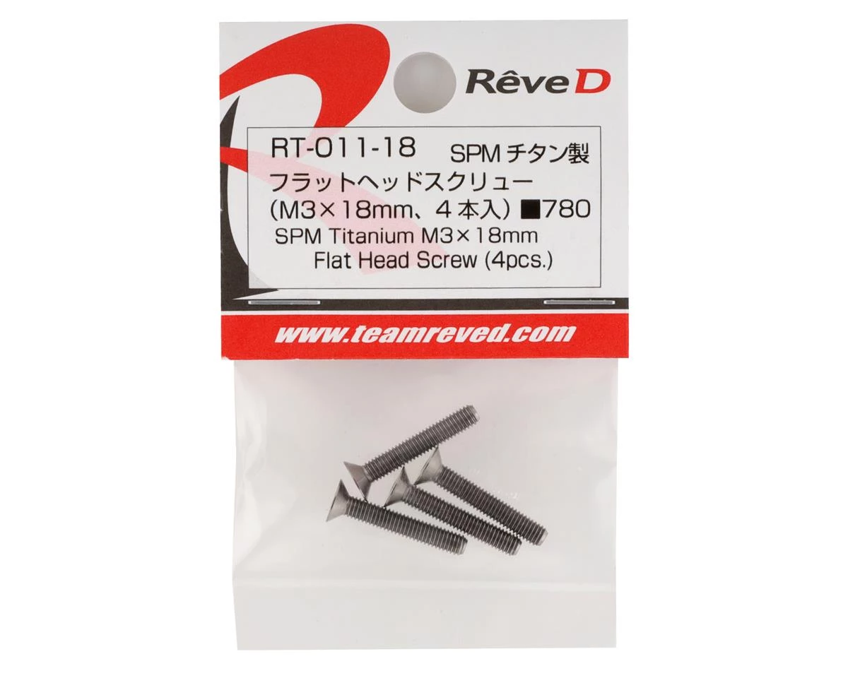 A package of four Reve D 3x18mm SPM Titanium Flat Head Screws.