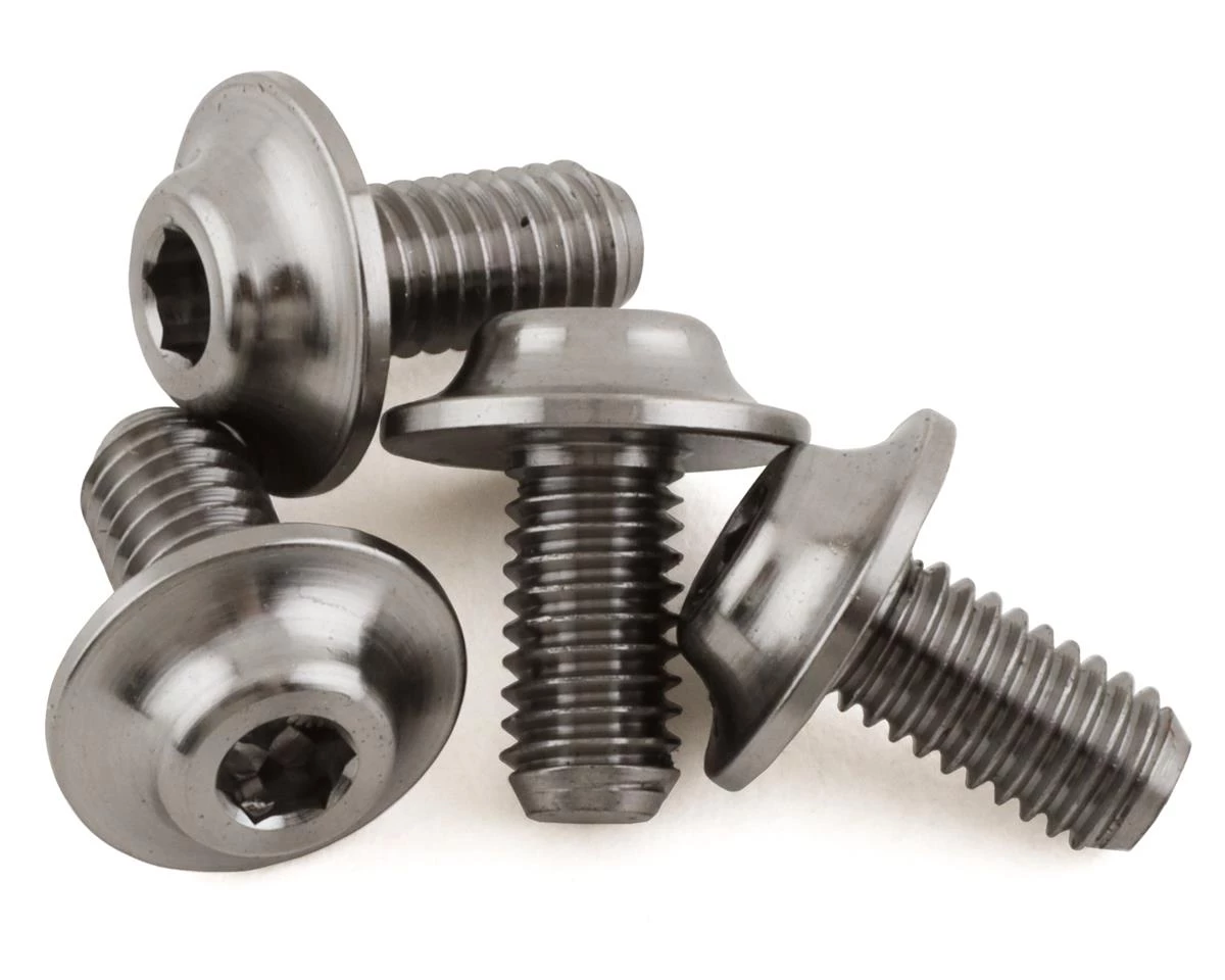 This is a package of four Reve D 3x6mm SPM Titanium Screws, that feature a large built in washer that measures 7mm in diameter. If you’re looking to add simplicity and bling to your ride, these screws from Reve D provide exactly that! Keep things not only lightweight, but elegant, and simple.