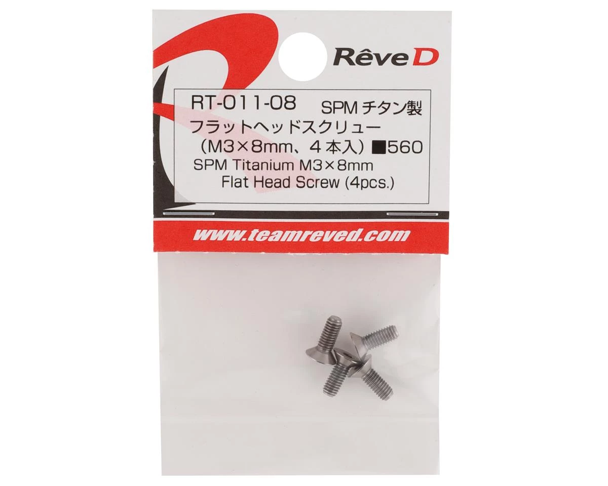 A package of four Reve D 3x8mm SPM Titanium Flat Head Screws.
