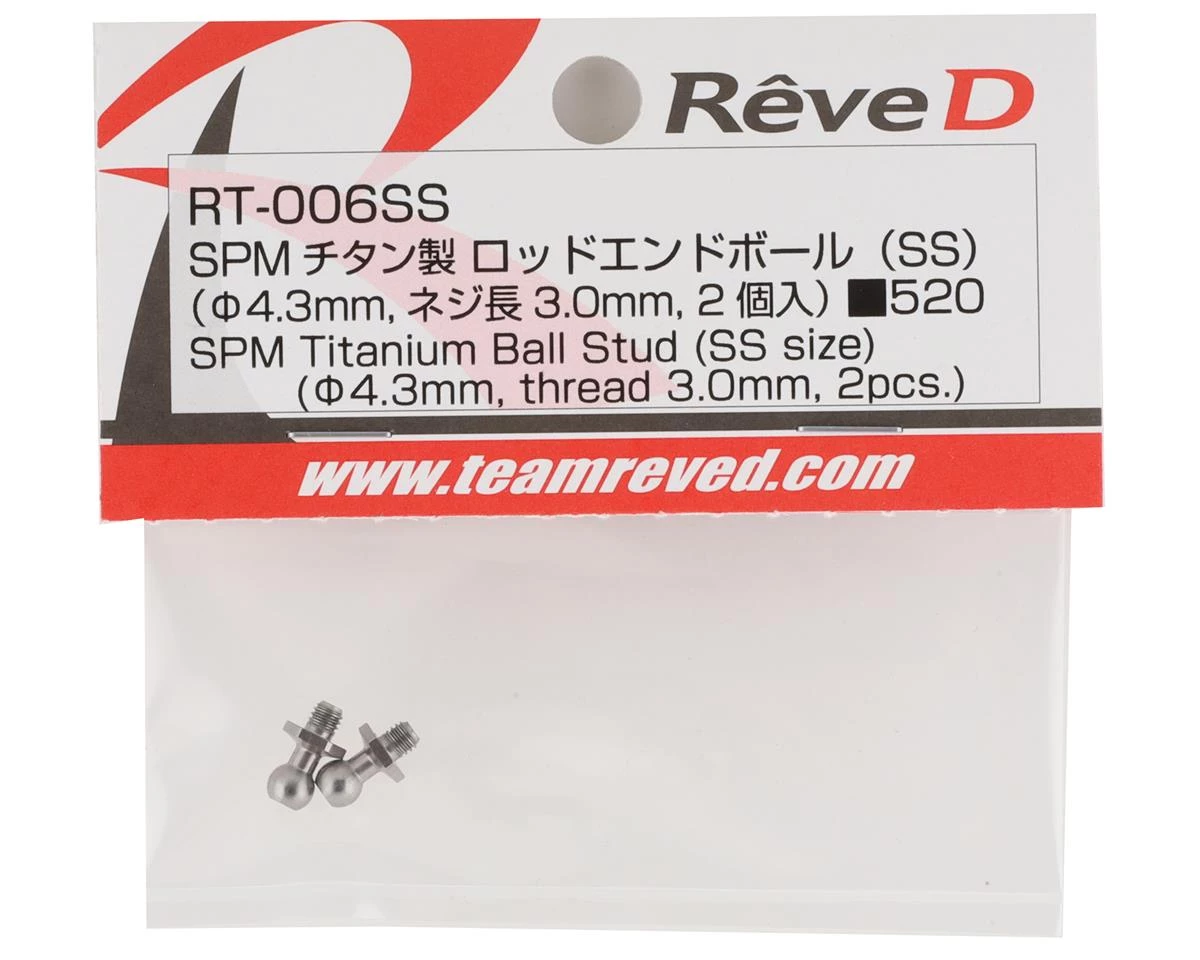 This is a package of two Reve D “SPM” Titanium Ball Studs, suited for use with the Yokomo YD-2 series of vehicles.