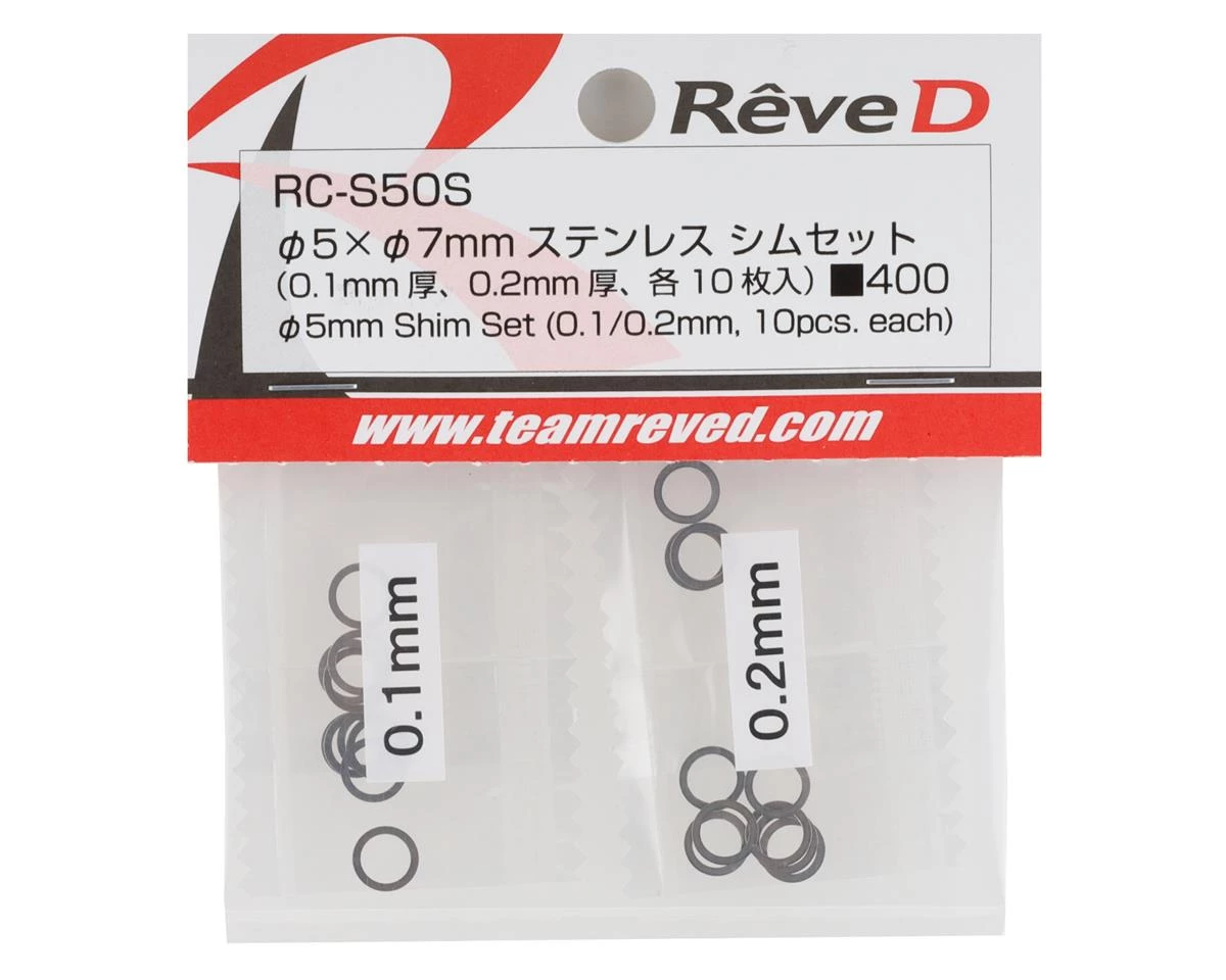 This is a package of twenty Reve D 5x7mm Shims. Included in the package are ten of each thickness shim, 0.1mm and 0.2mm.Â