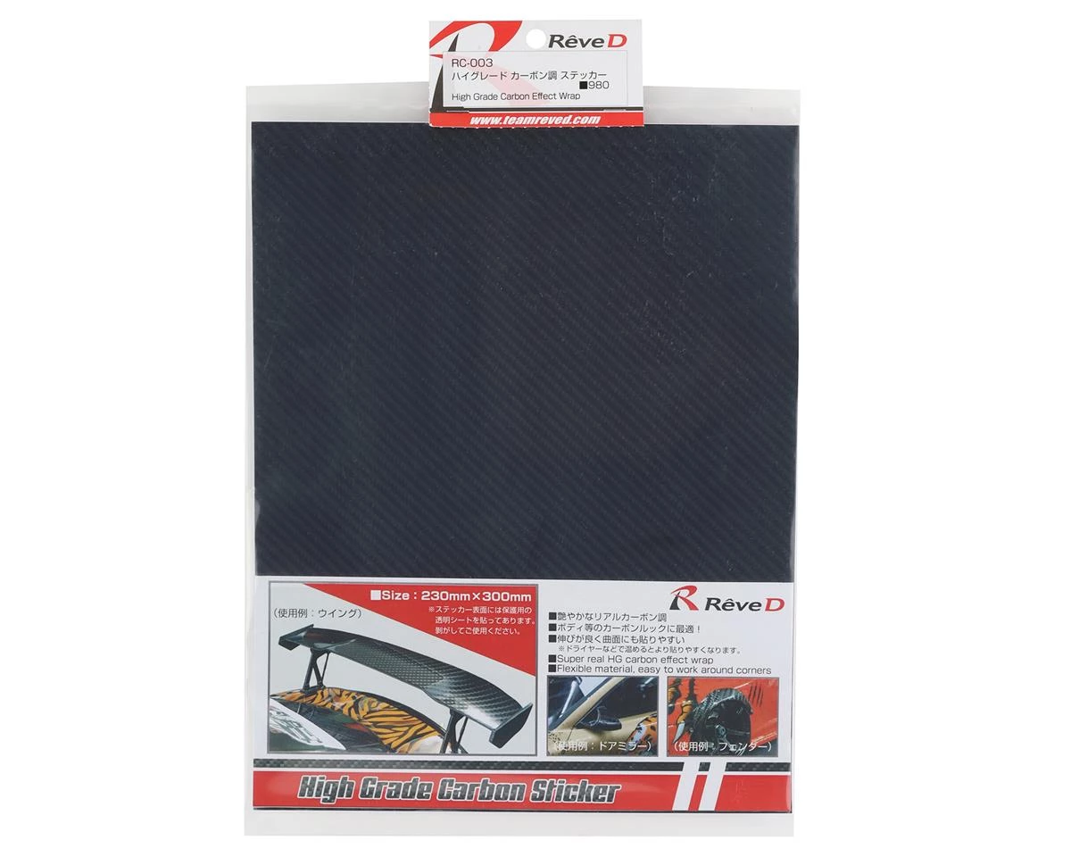 The Reve D Carbon Fiber Wrap is a rectangular vinyl decal that features authentic carbon fiber look, and can easily be added as accent pieces to any RC Car body, or other projects for that matter!