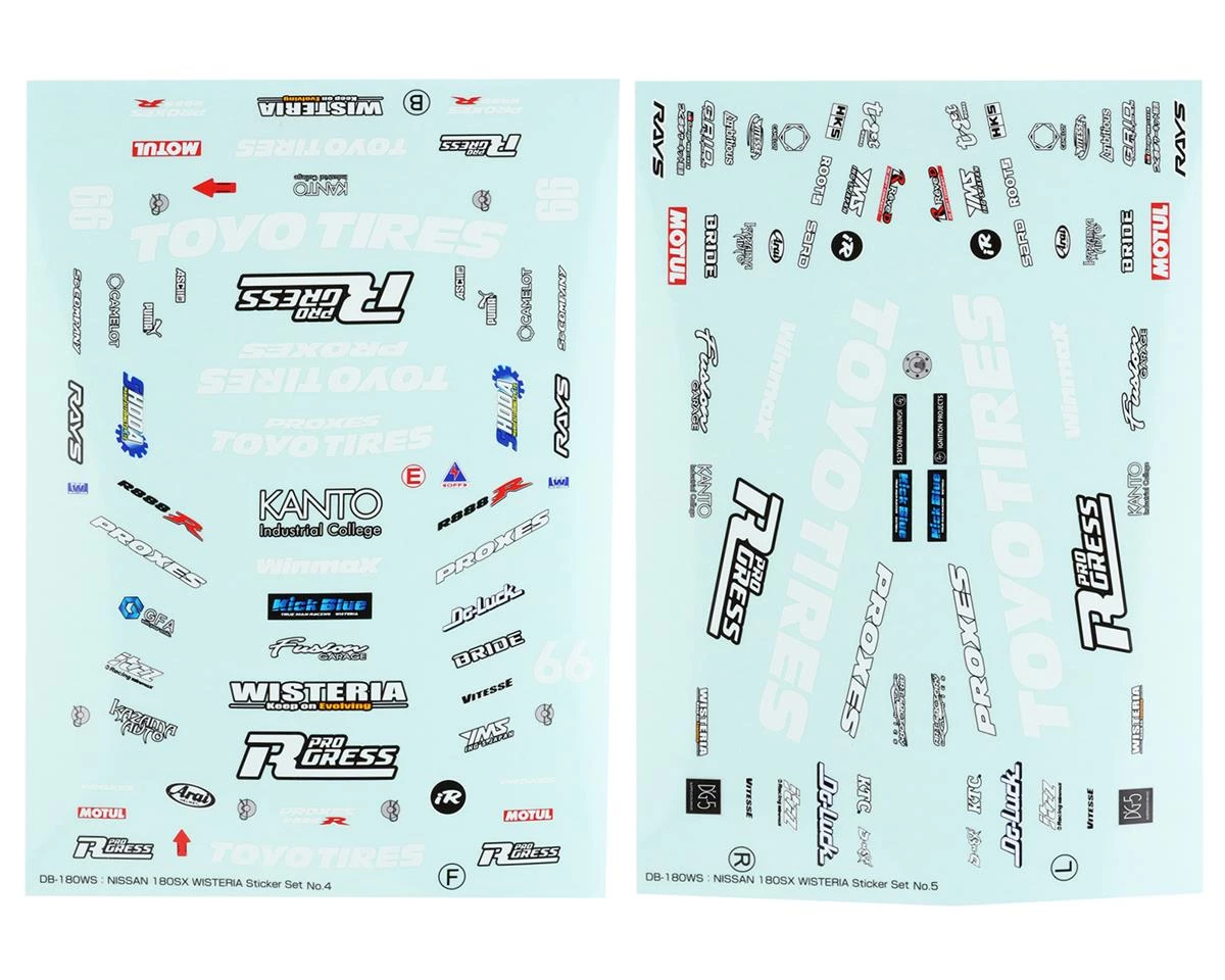 For drivers looking to add incredible scale realism to their 180SX Wisteria body, look no further. This set of stickers includes three different sheets that reproduce the actual D1 vehicle and sponsor logos. Each sticker is a perfect fit to the body, even with curved surfaces.Â