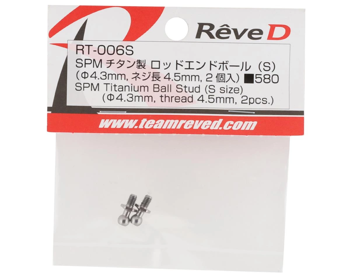 This is a package of two Reve D “SPM” Titanium Ball Studs, suited for use with the Yokomo YD-2 series of vehicles.