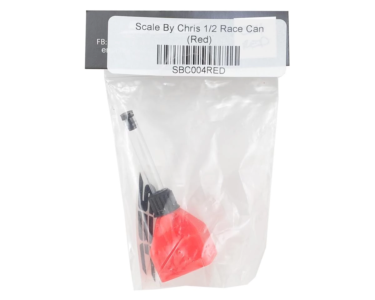 The Scale By Chris 1/2 Race Can is a 3D printed miniaturized replica that adds that perfect finishing touch to your scale build. This red half size can features a printed handle and lid, with recessed logo and can marking details, as well as a crystal clear fill tube and black fill tube plug. This is perfect for builds that use a half depth cargo area, such as Axial or Pro-Line Jeep bodies, and truck bodies with half depth beds. The can measures approximately 24mm deep, 24mm wide and 35mm tall at the lid (not including filler tube). This can be secured using a rubberized glue, or by drilling a hole in the bottom and using a screw through the body to hold the can in place.