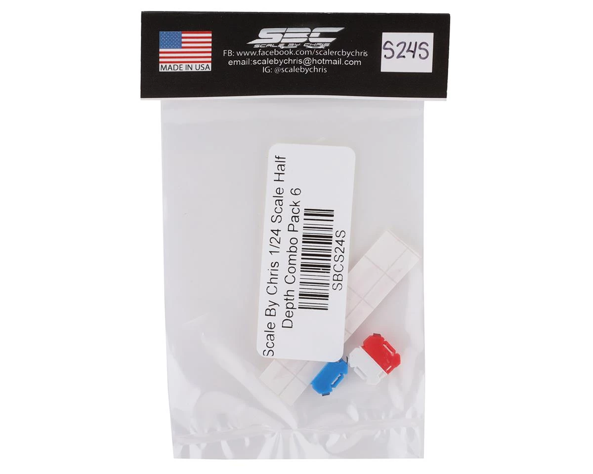 Scale by Chris 1/24 Scale Half Depth Combo Pack 6 is a great way to add micro size detail to your micro size rig. These 1/24 scale half depth items look great and are a great way to accessorize the bed of your truck. Half Depth Combo Pack 6 includes a red, white and blue scale roto can.