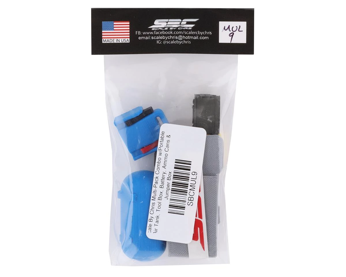 The Scale By Chris SBC Multi-Pack Combo 9 includes the SBC Portable Air Tank, Tool Box, Battery, Ammo Cans & Jumper Box, making it easy to add details to your custom build. These parts are 3D printed miniaturized replicas that add style to your scale build and are a great way to increase the level of scale details in your shop, or rig. Plus, by buying these items in a combo, you save a few bucks compared to buying all the items separately!