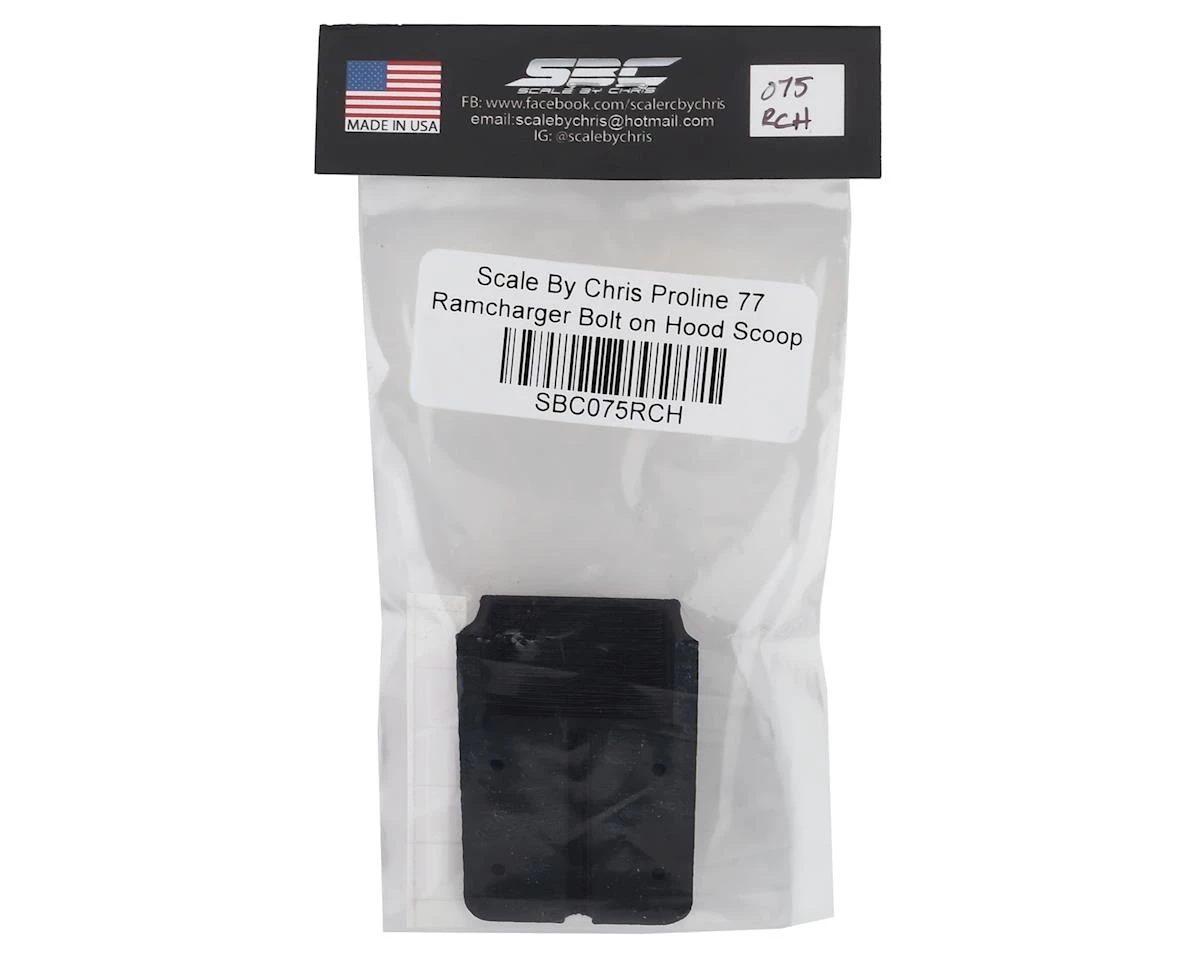 The Scale By Chris Proline 77 Ramcharger Bolt on Hood Scoop is a 3D printed accessory to add some scale horsepower to your Pro-Line 77 Ramcharger body. The hood scoop measures 53x38x11mm and is installed using M3 hardware (not included), and can be further detailed using Tamiya TS primer and paint.