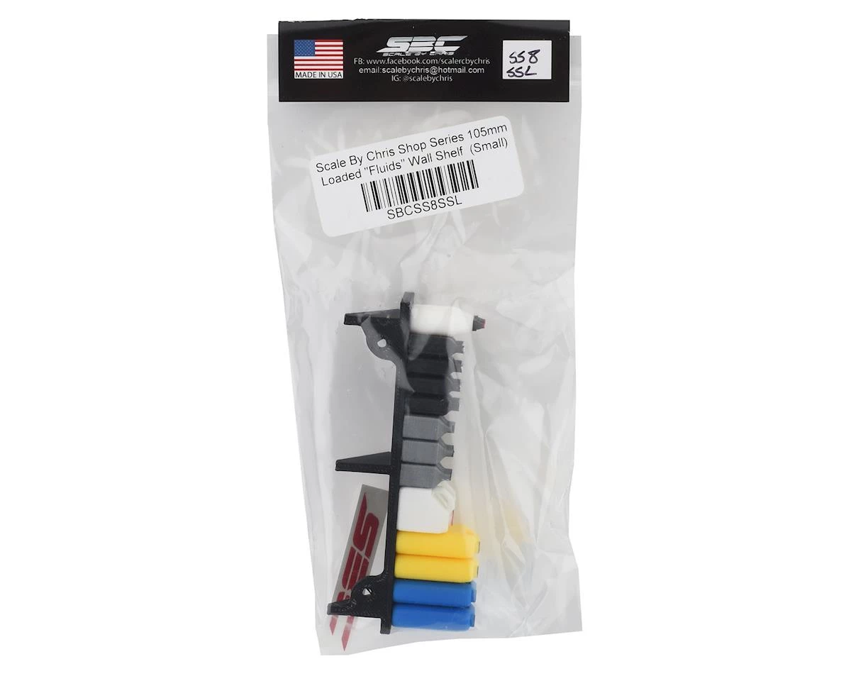 The Scale by Chris Scale Shop Series 105mm Loaded “Fluids” Wall Shelf is a great way to add details to your scale shop. This shelf measures approximately 105mm wide by 25mm deep, and is packed with 3D printed bottles that replicate the essential fluids found in any 1:1 shop. The shelf is secured to the surface you choose using your M3 hardware. This shelf s the perfect you accessory for anyone looking to add a realistic finishing touch to their scale diorama.