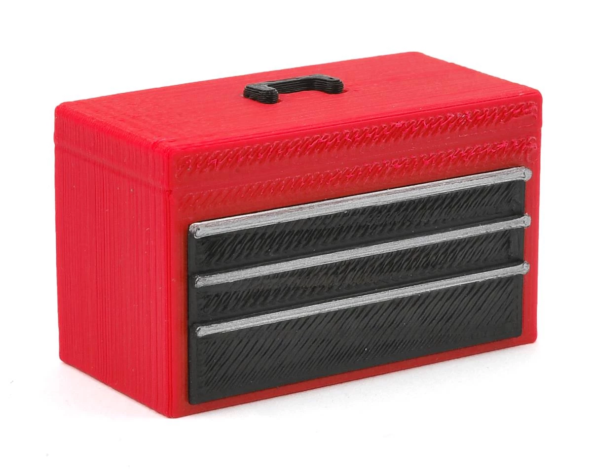 The Scale By Chris Tool Box is a 3D printed miniaturized replica that adds that perfect finishing touch to your scale build. This red tool box features printed handle and drawer details with hand painted trim. The tool box measures approximately 22mm deep, 44mm wide and 28mm tall and can be secured using a rubberized glue, or by drilling a hole in the bottom and using a screw through the body to hold the box in place.