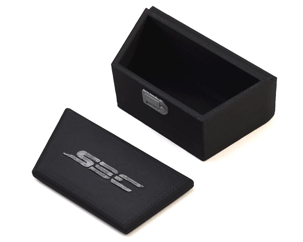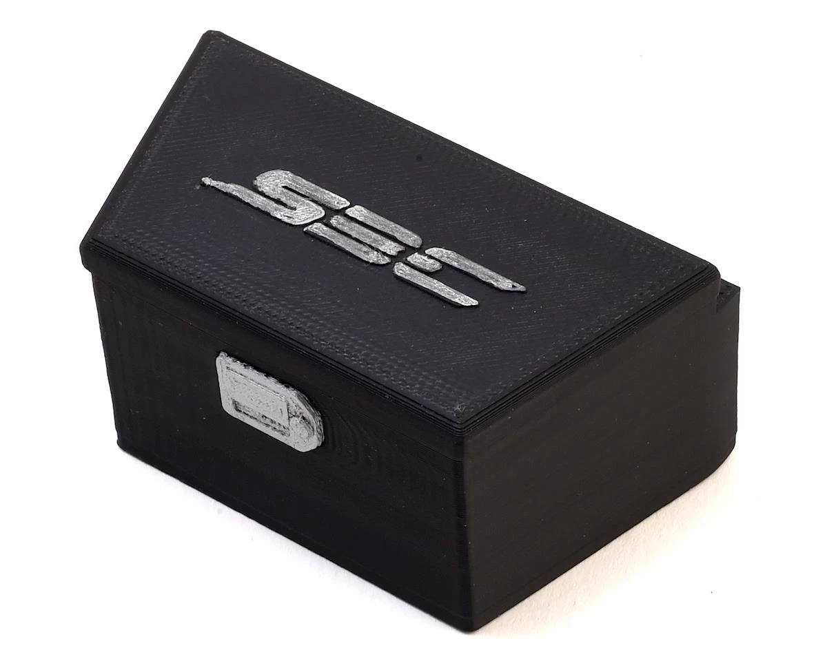 The Scale by Chris Trailer Tongue Storage Box is a great accessory for your custom trailer! This trailer box features hand painted handle and lid details that will bring your build to life. The box tapers from 75mm wide to 55mm wide when measured back to front, is 40mm deep, and 38mm tall (exterior dimensions). The interior dimensions of the box measures 67mm wide at the back and tapers to 50mm wide at the front, 31mm from front to back, and 30mm deep. This makes the box perfect to use as a storage compartment for a 9V battery or a light controller. The lid fits into the box and requires no hardware to be held in place.