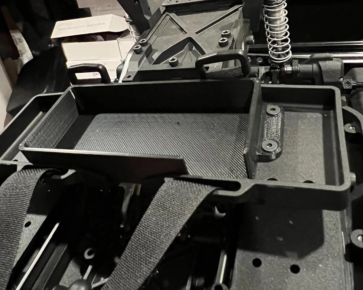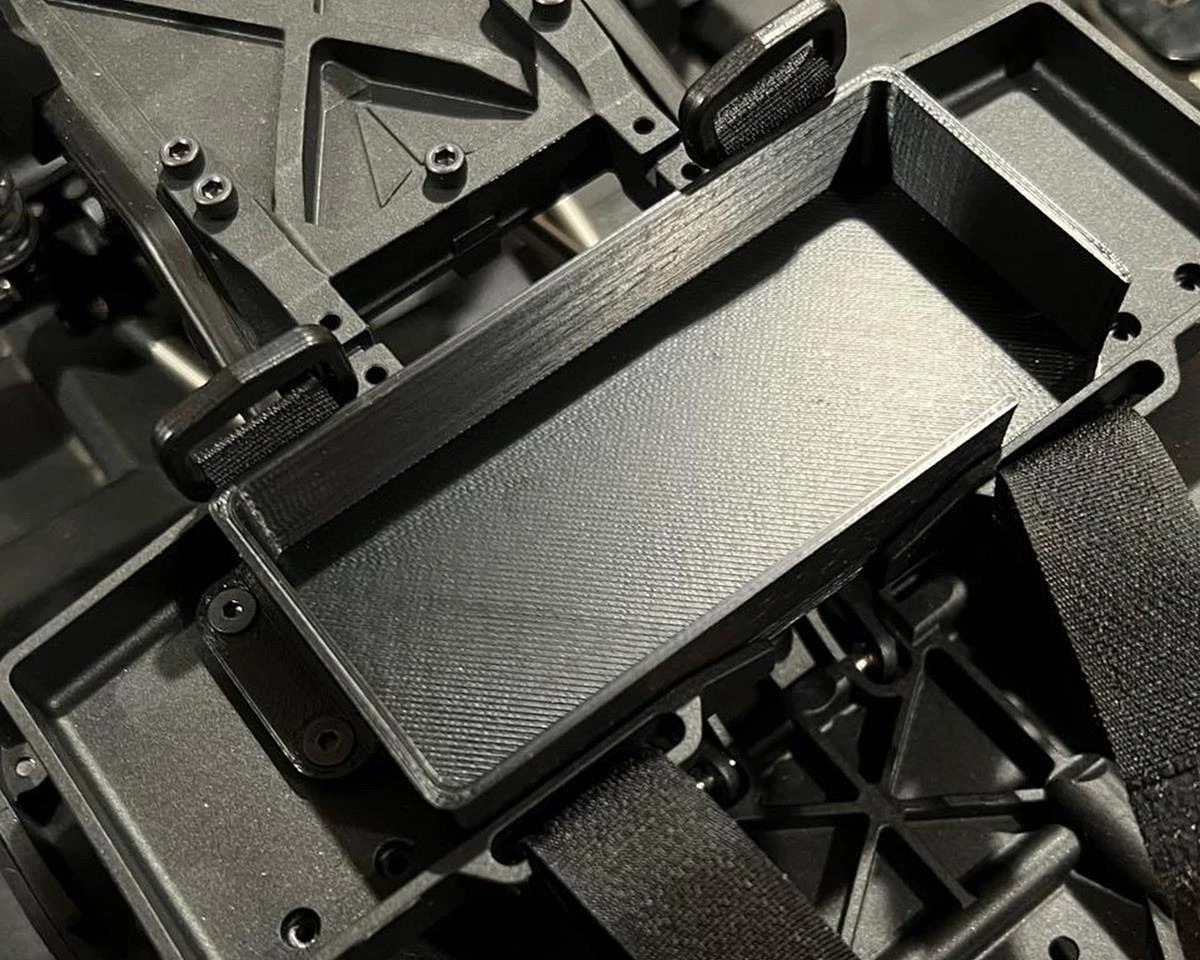 The Scale by Chris VS410 Phoenix Shorty Battery Tray is an optional battery tray upgrade for the VP Phoenix that offers a secure hold on shorty style battery packs – no matter what kind of trouble you get in. This 3D printed accessory measures 43x95mm internally, and installs using the stock hardware and battery straps. Package includes one battery tray.