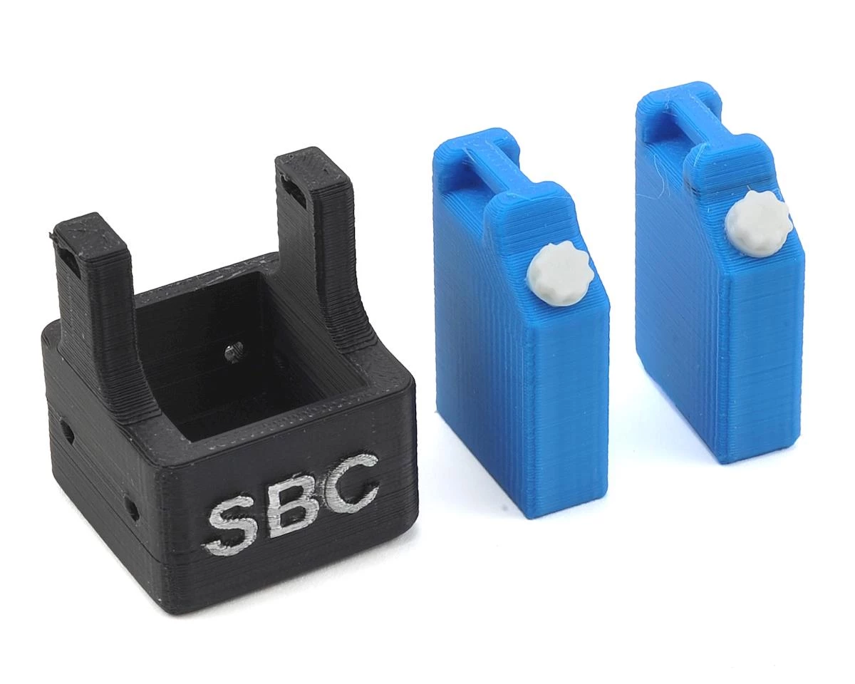 The Scale By Chris 2 Water Jug Set with Holder is a 3D printed miniaturized replica that adds that perfect finishing touch to your scale build. This combo includes two water jugs and a holder with preset holes that make it easy to mount on your project. The water jug features a printed handle and lid, and measures 25mm deep, 10mm wide and 35mm tall. The holder measures approximately 32x32x38mm.